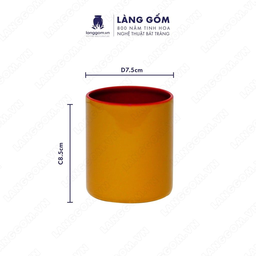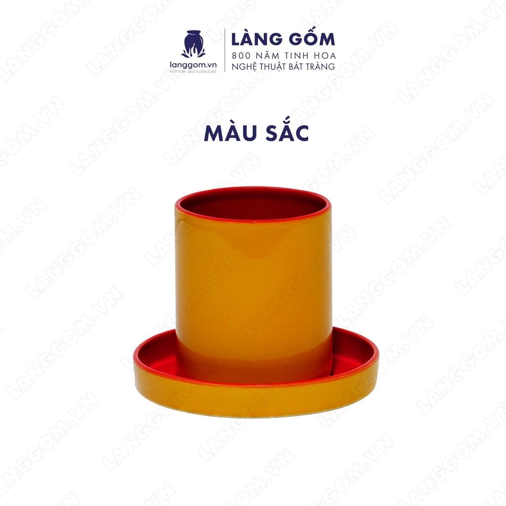 Bộ cốc và đĩa gốm sứ 2 màu cam đỏ, men mát