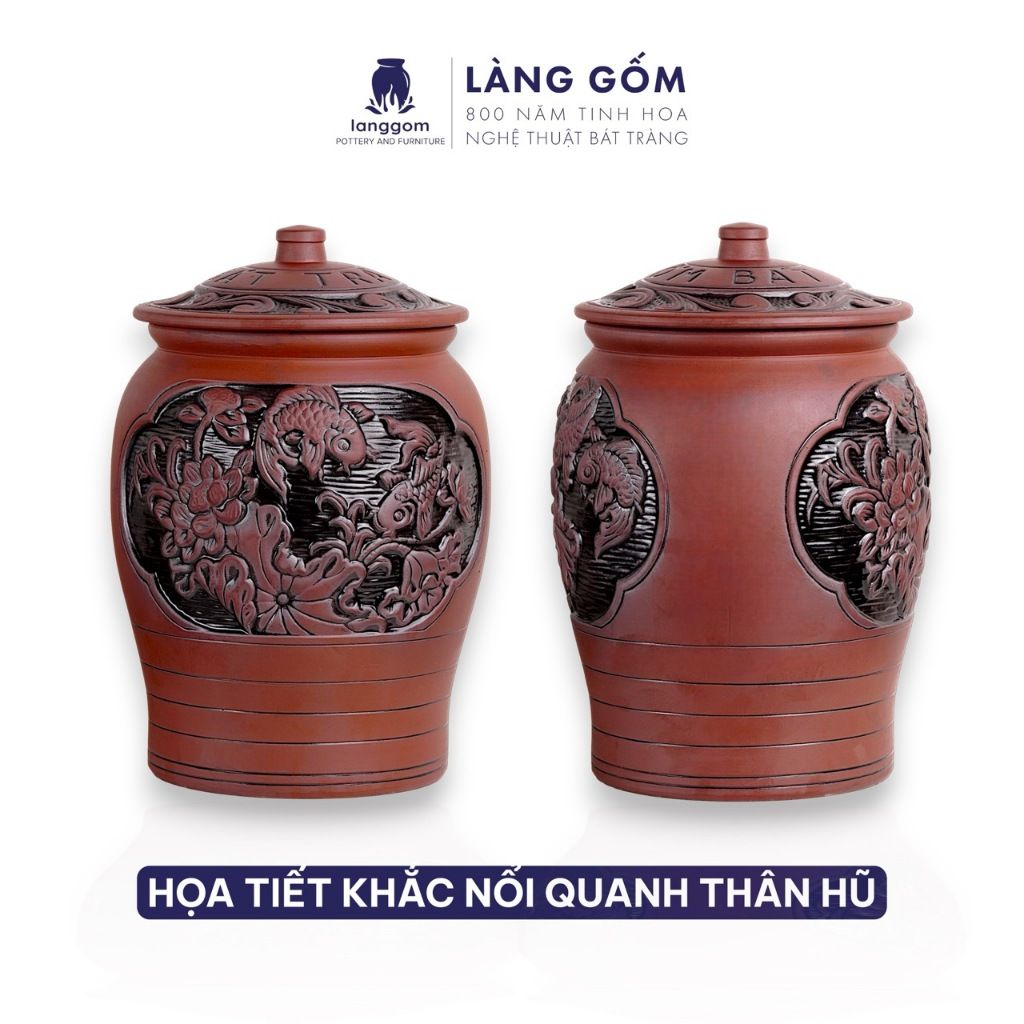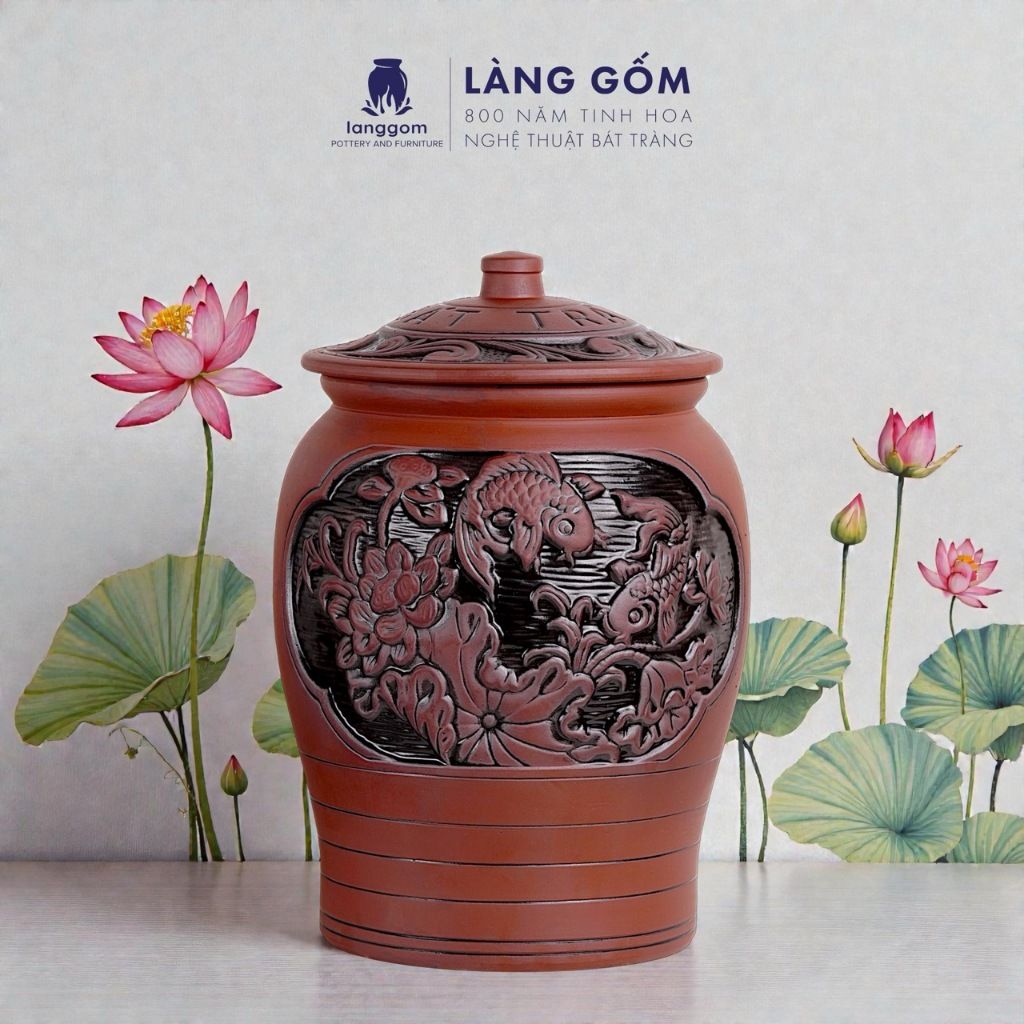 Chum đựng gạo sành Liên Ngư Hữu Dư