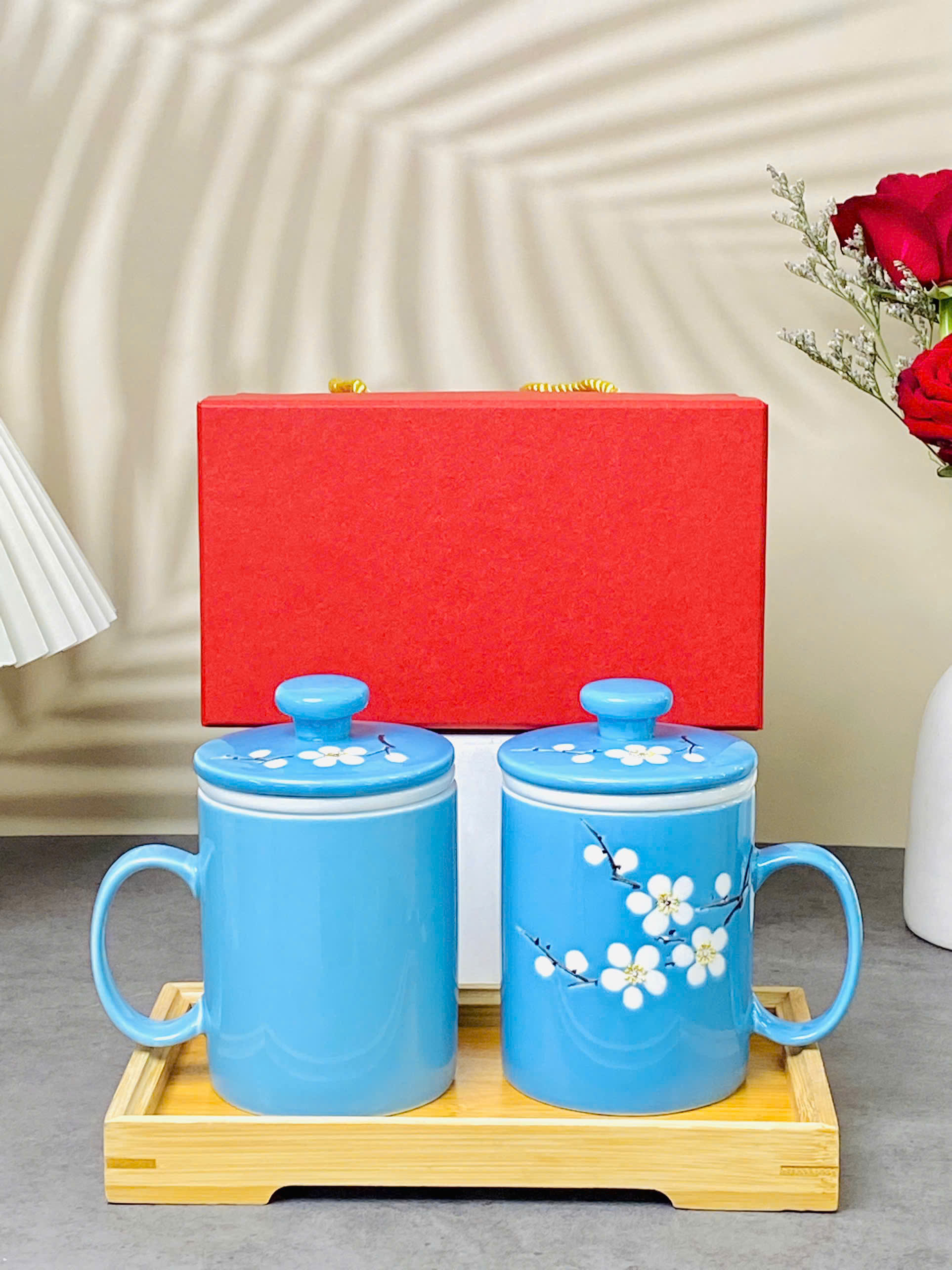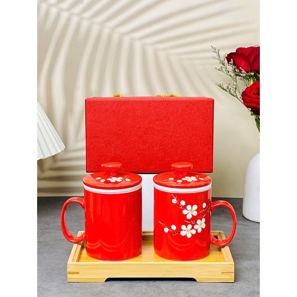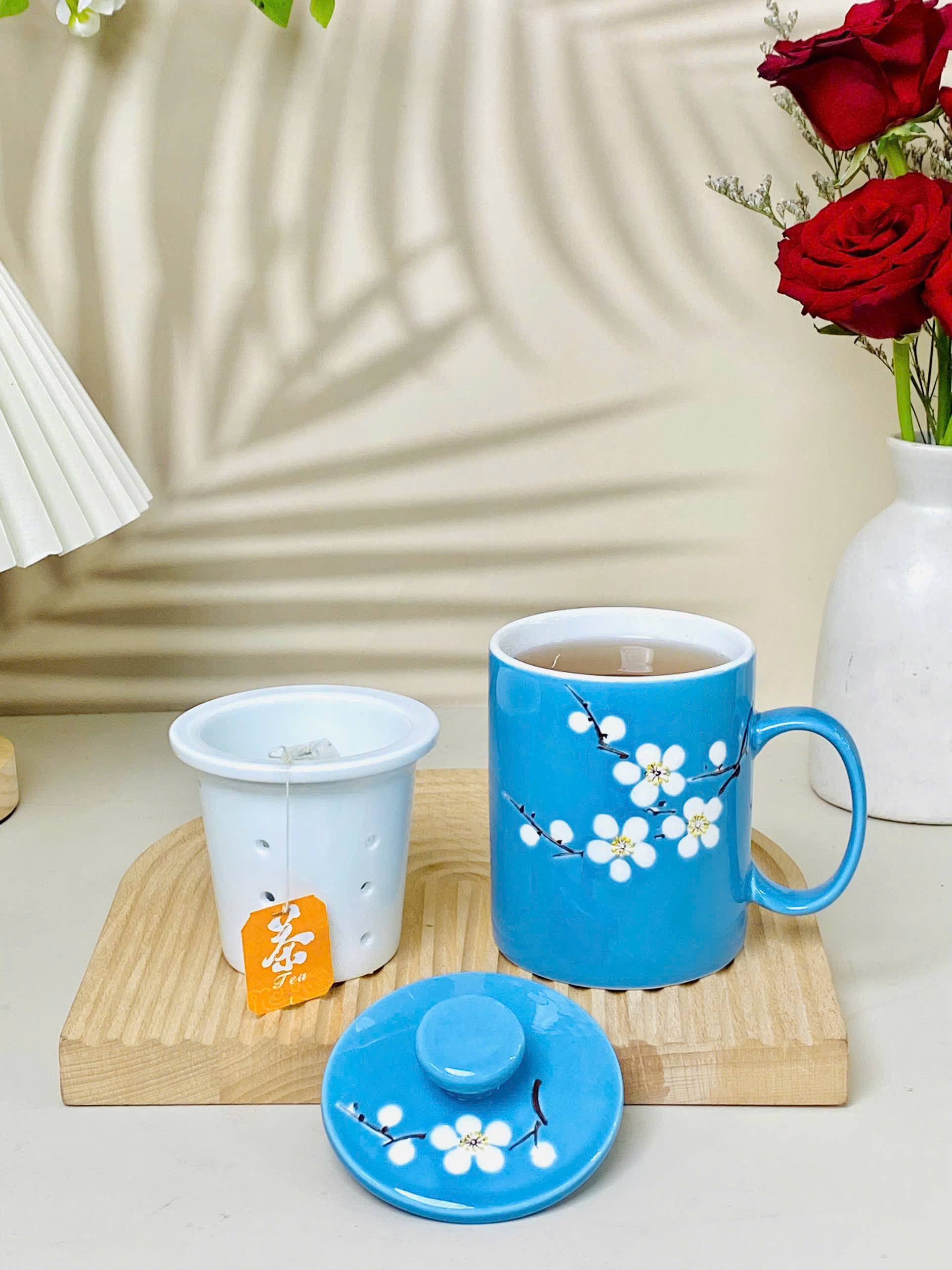 Cốc lọc trà vẽ nổi hoa đào trắng dung tích 330ml