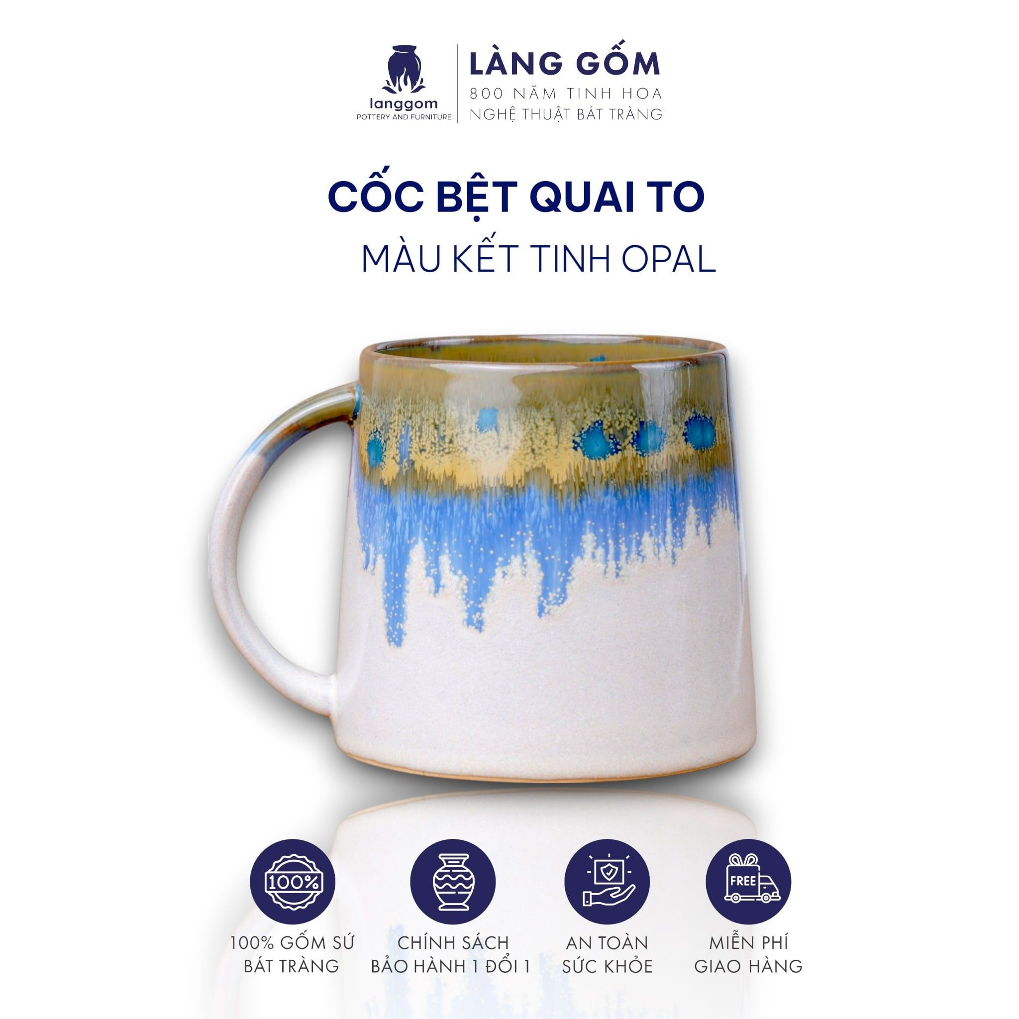 Cốc bệt quai to men hoả biến dung tích 500ml