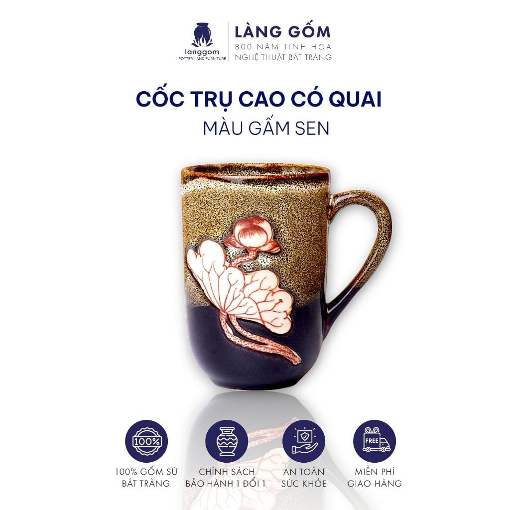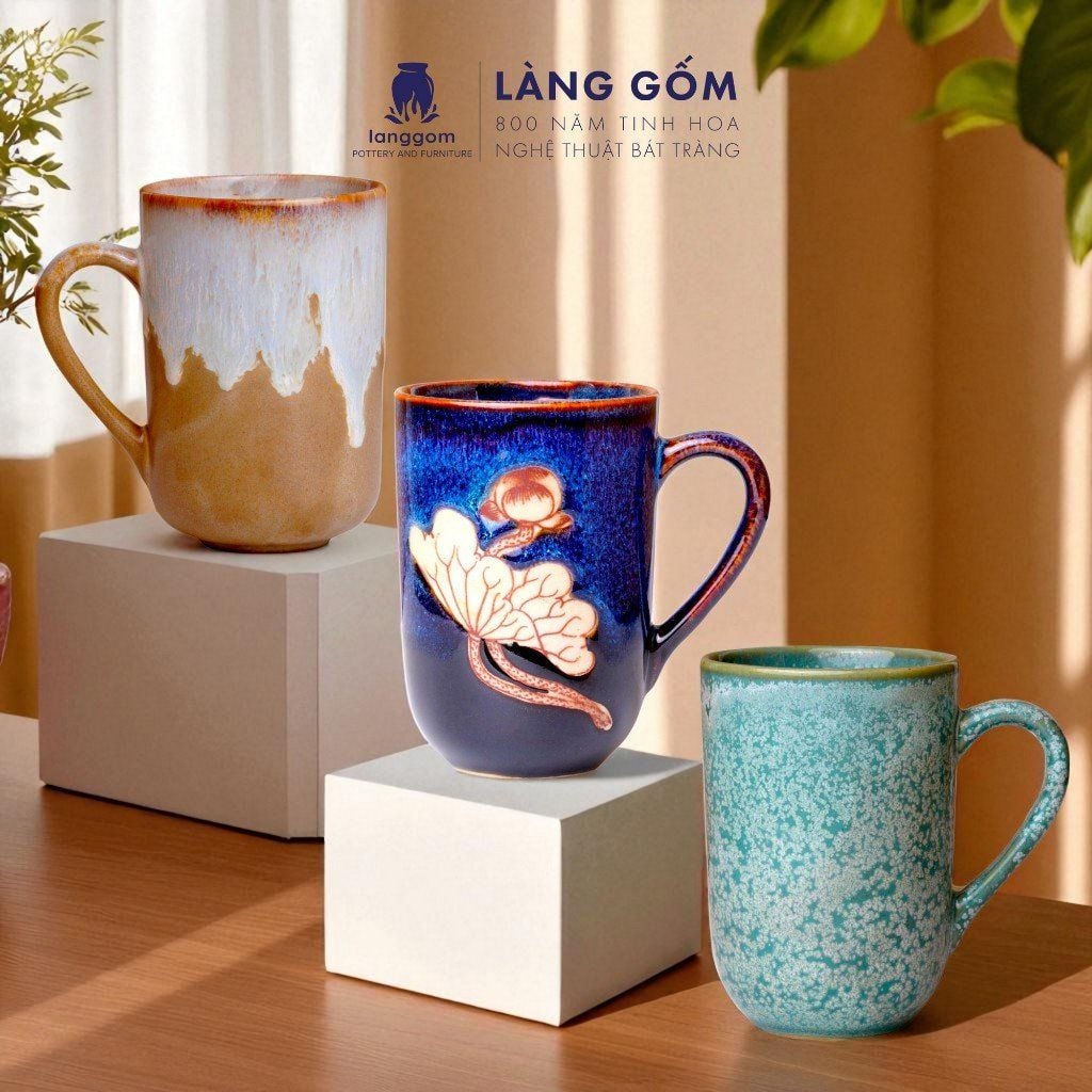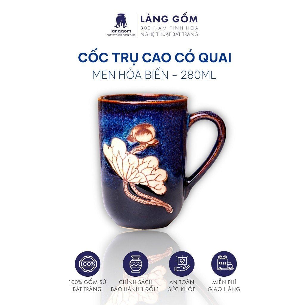 Cốc trụ cao có quai, men hỏa biến dung tích 280ml