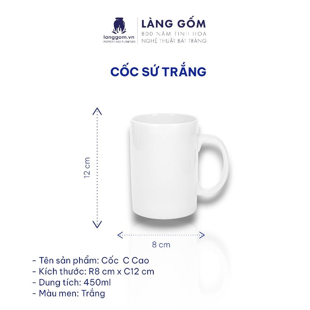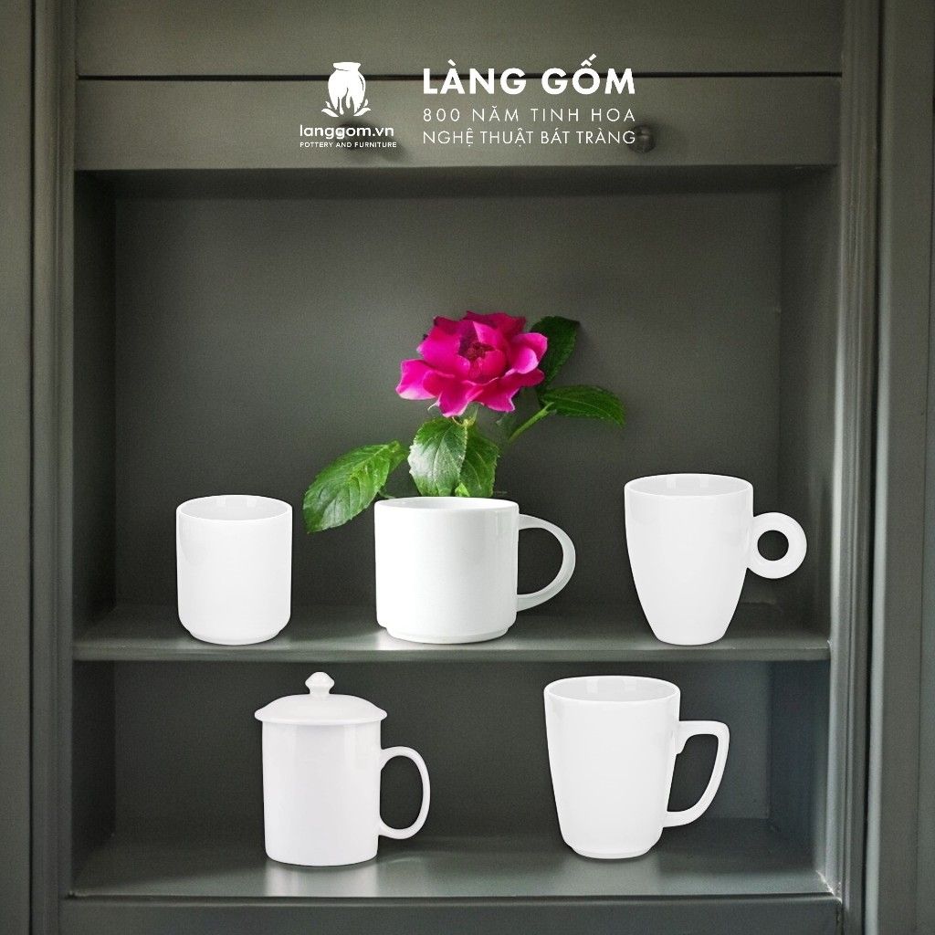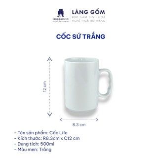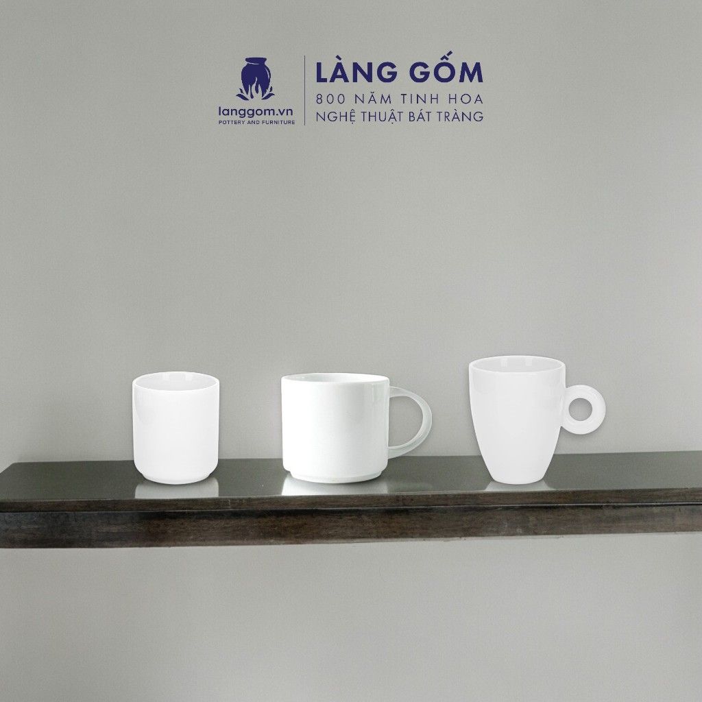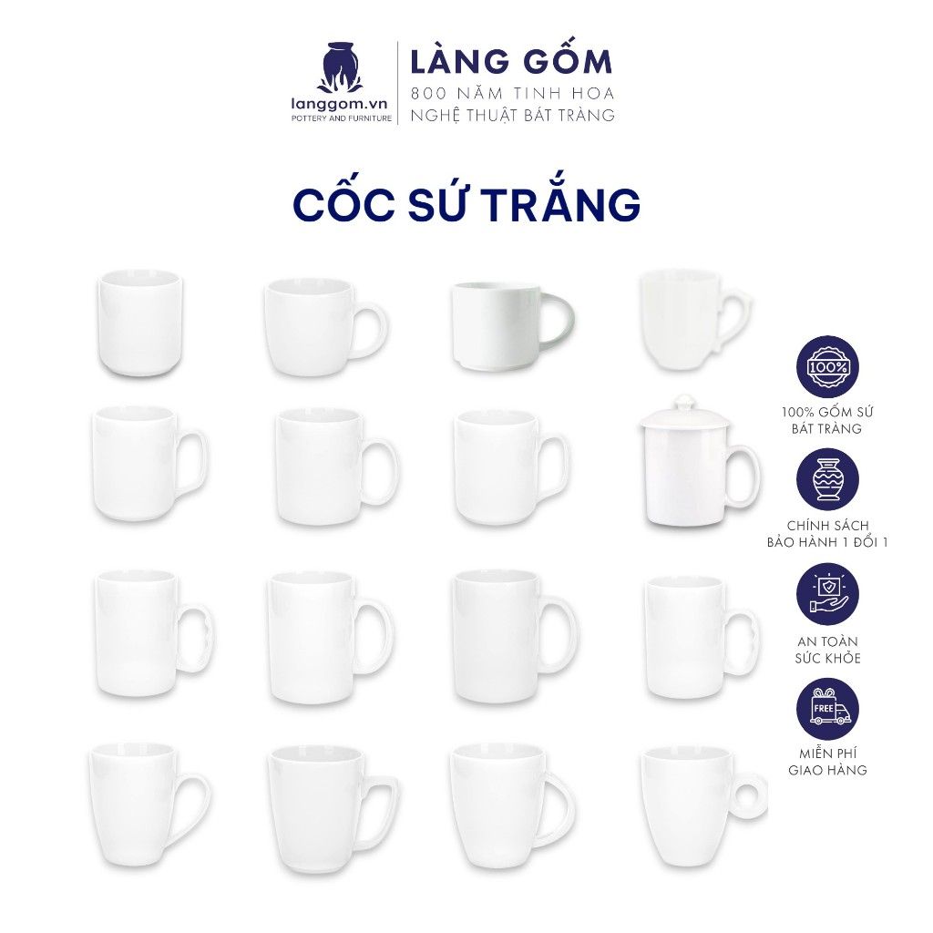 Cốc sứ trắng nhiều kiểu đa dạng, dung tích 200ml - 500ml