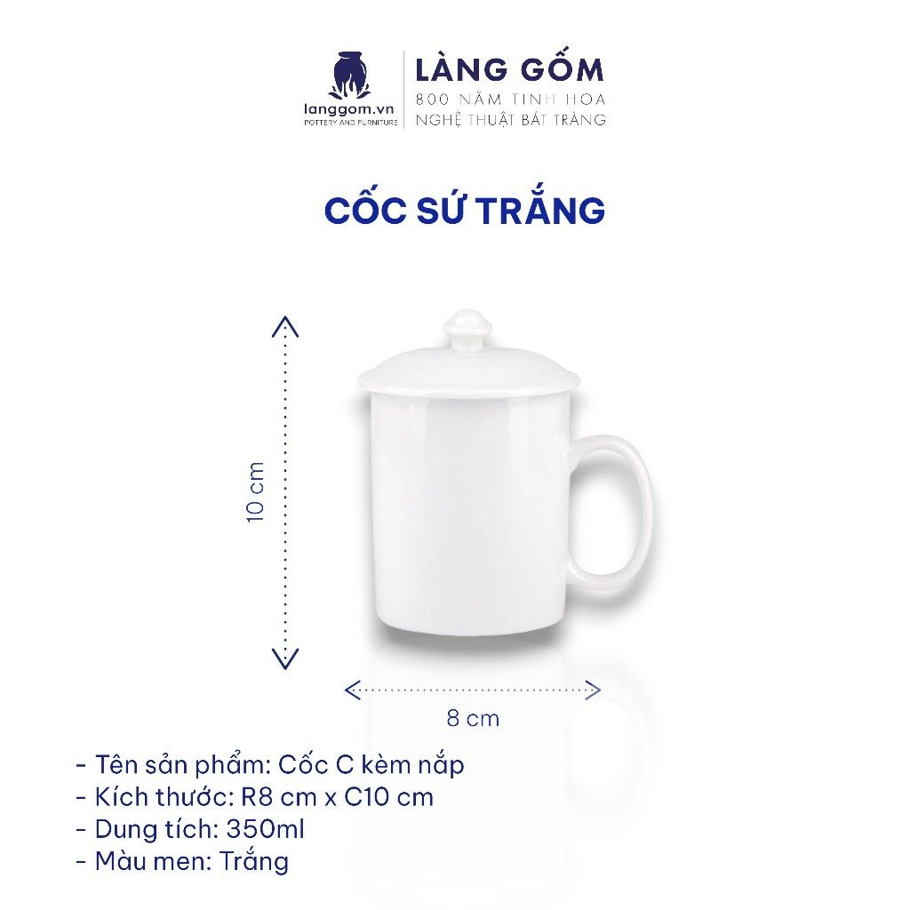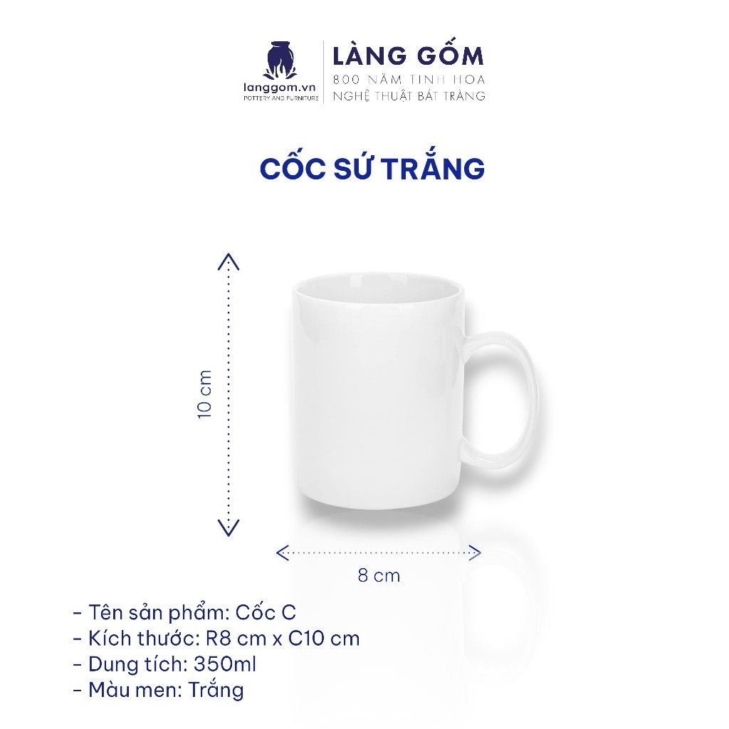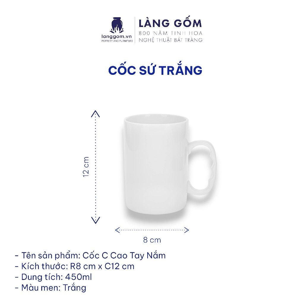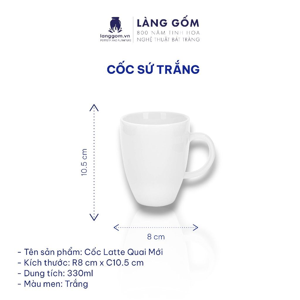 Cốc sứ trắng nhiều kiểu đa dạng, dung tích 200ml - 500ml