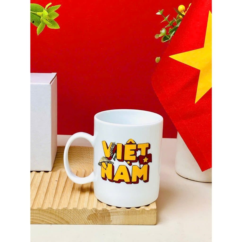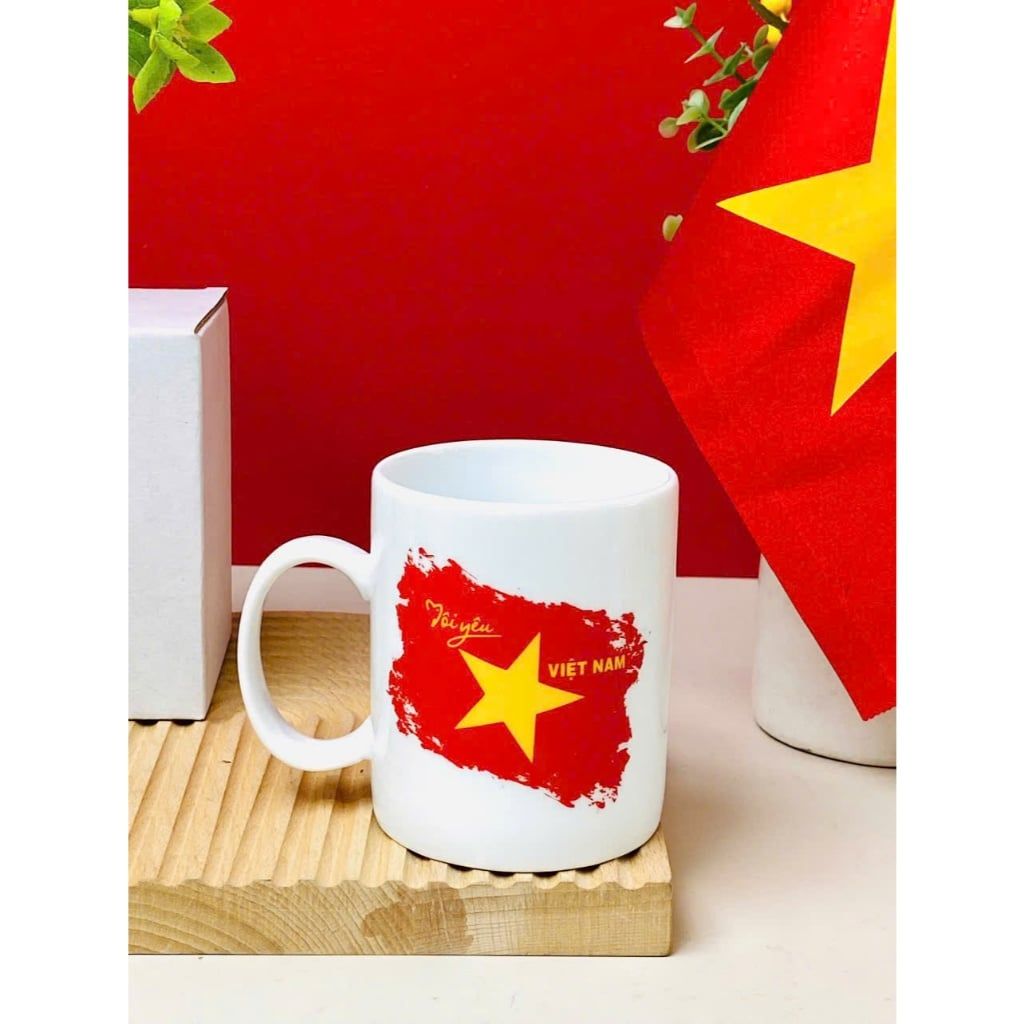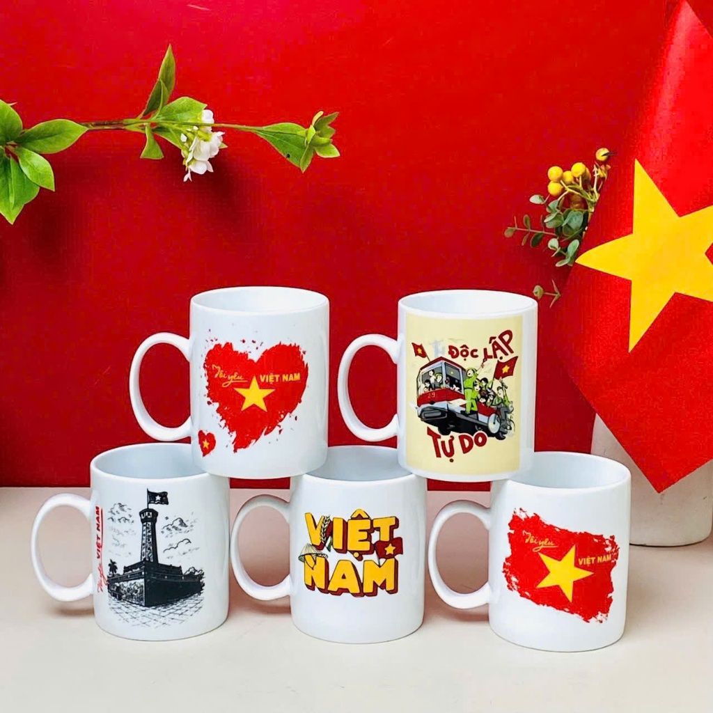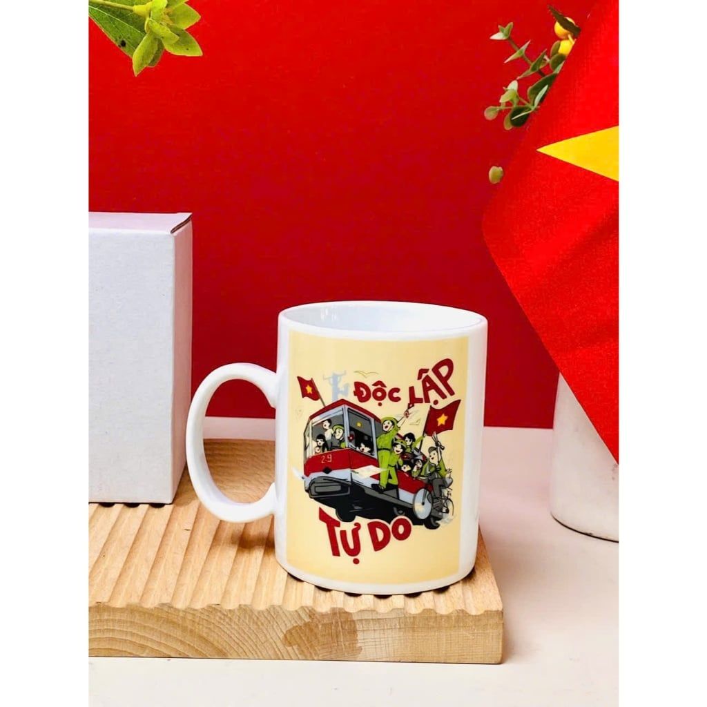 Cốc uống trà men trắng in lá cờ Việt Nam, Độc lập Tự do