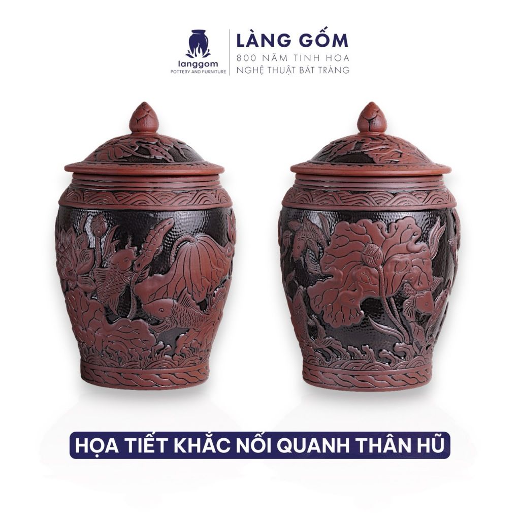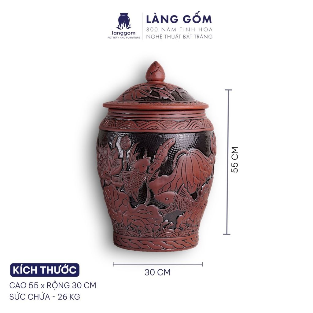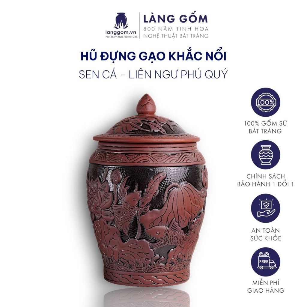 Hũ đựng gạo Liên Ngư Phú Quý