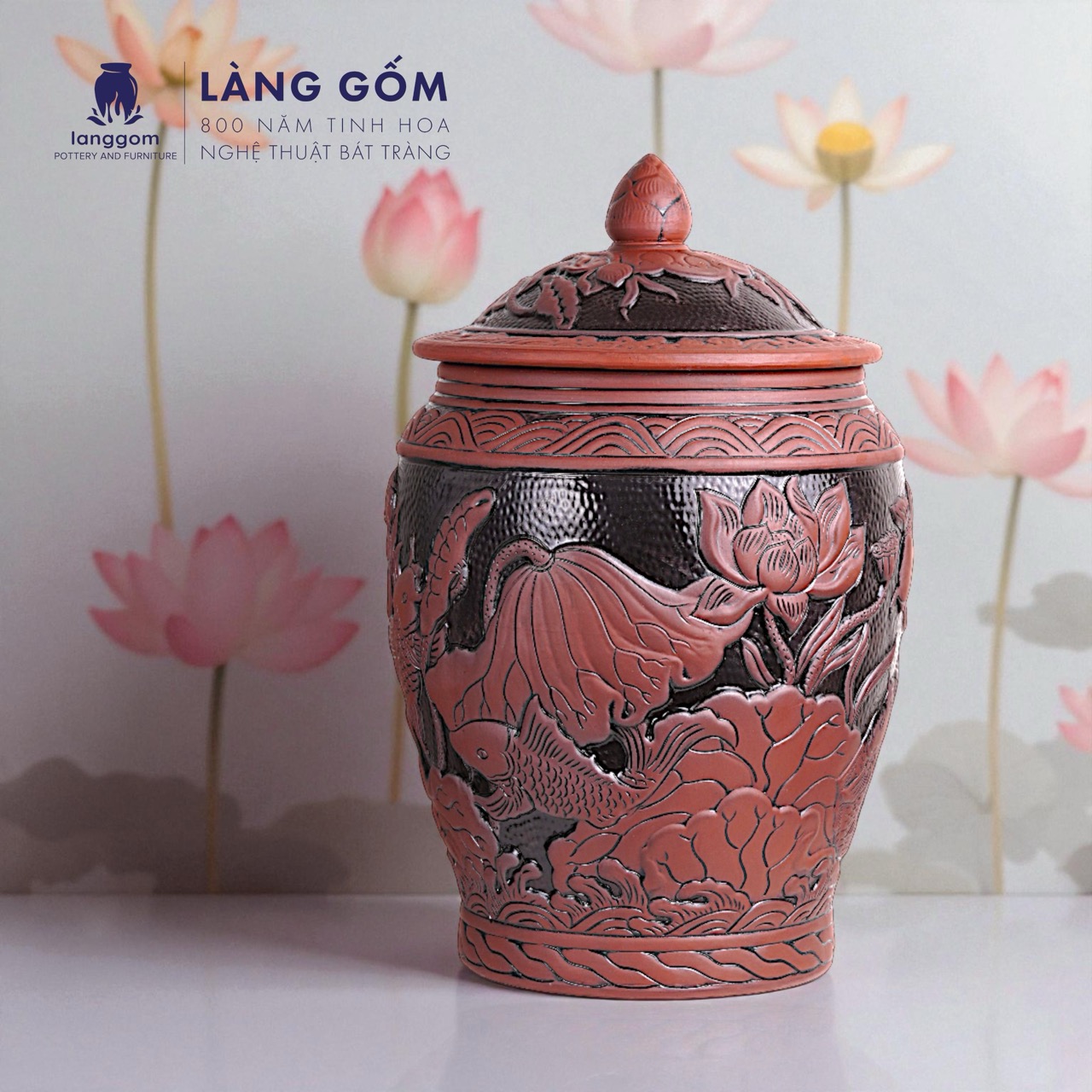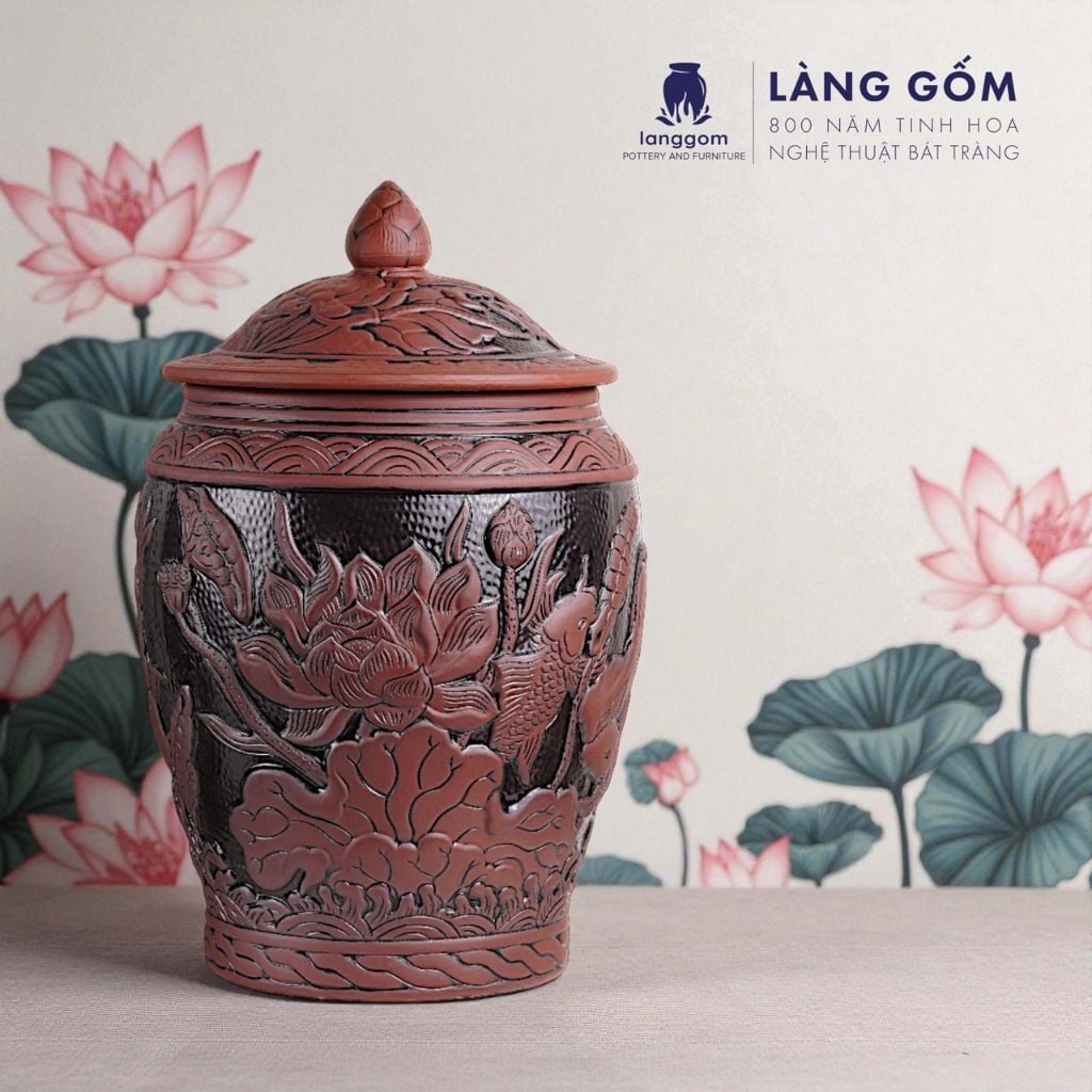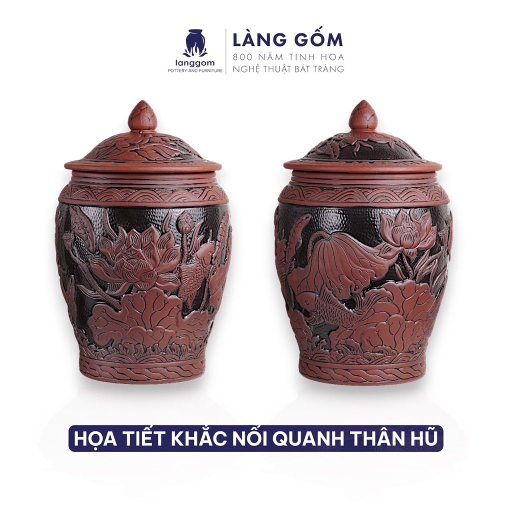 Hũ đựng gạo Liên Ngư Phú Quý