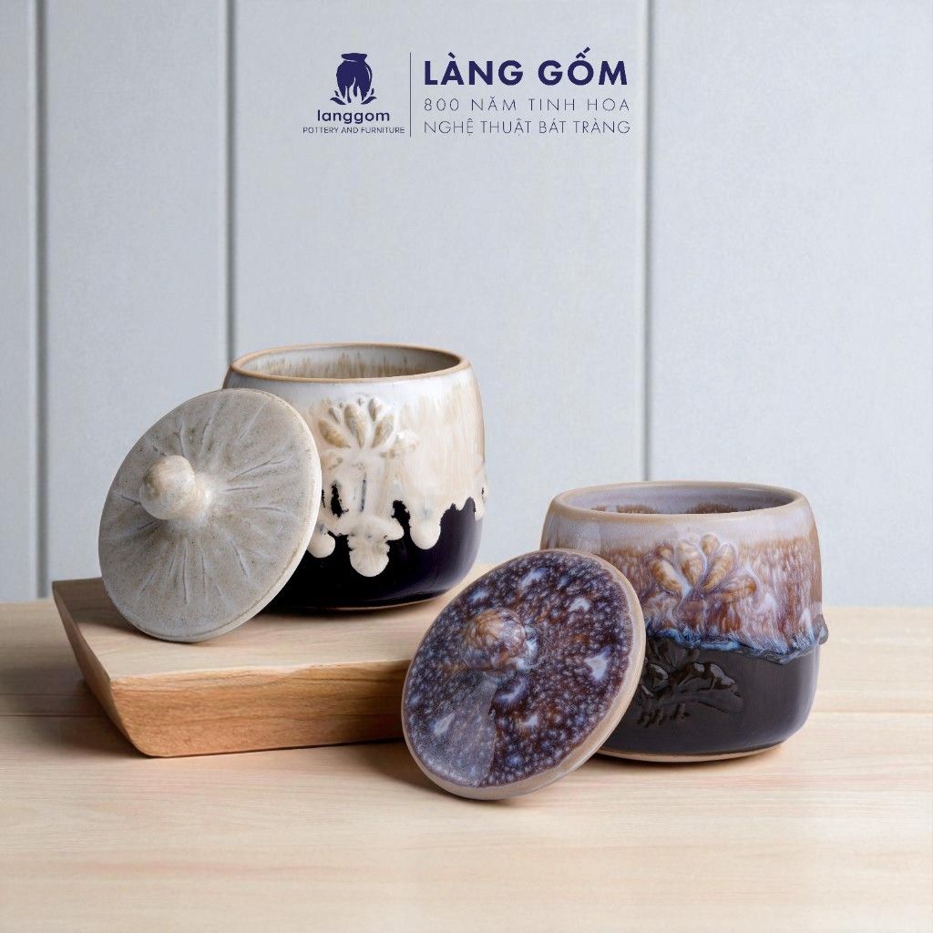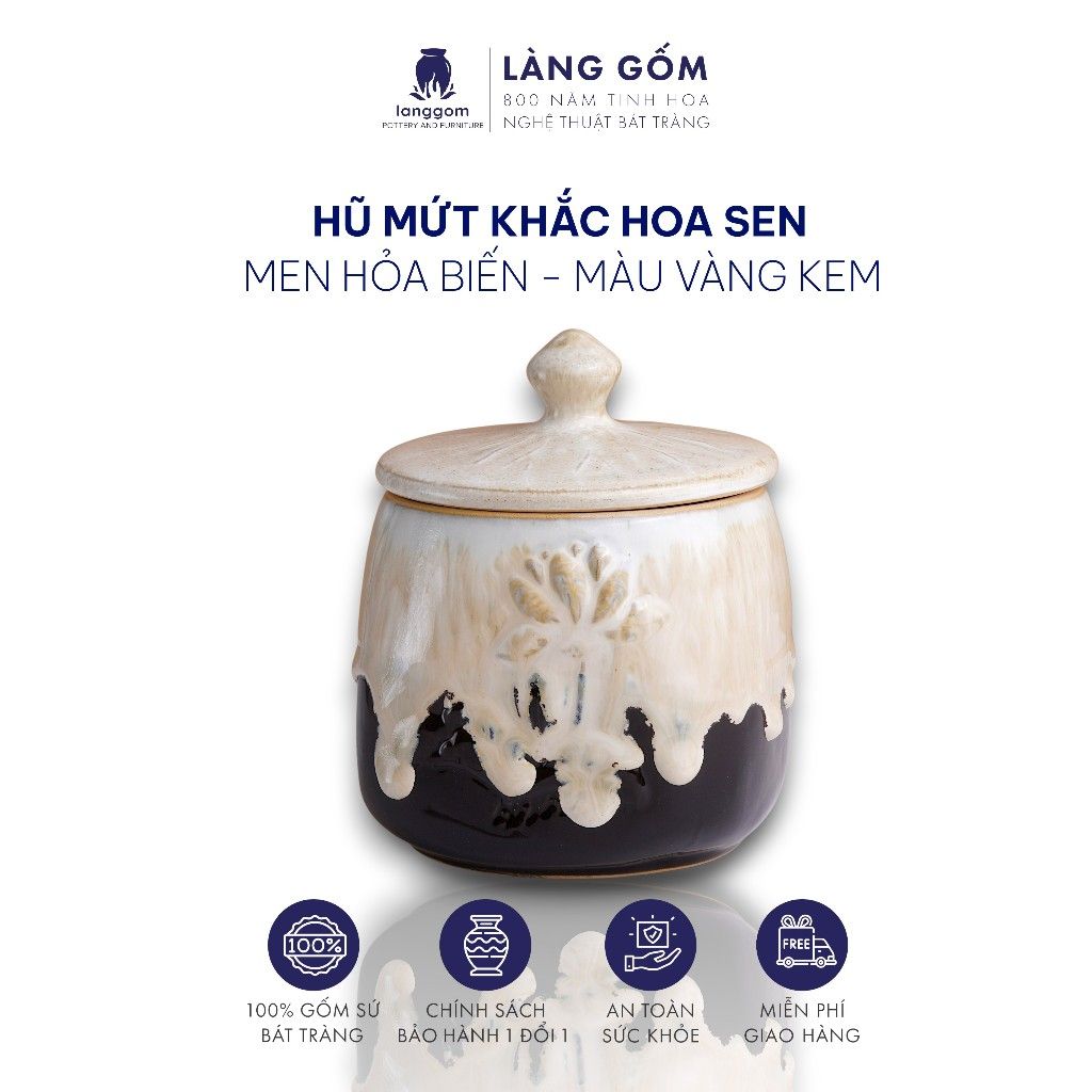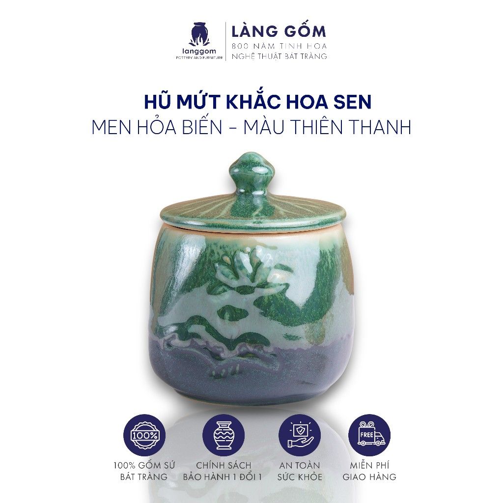 Hũ mứt khắc hoa sen Men hỏa biến