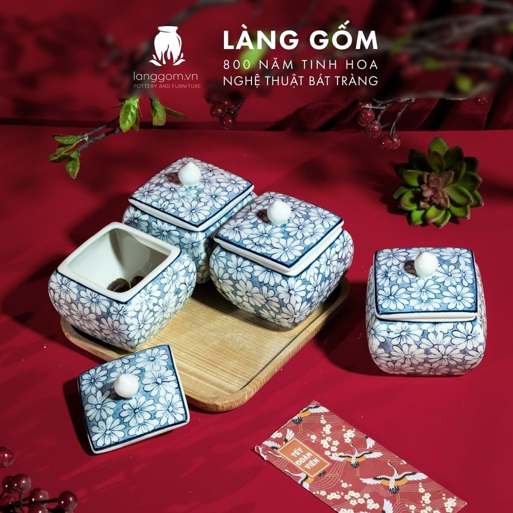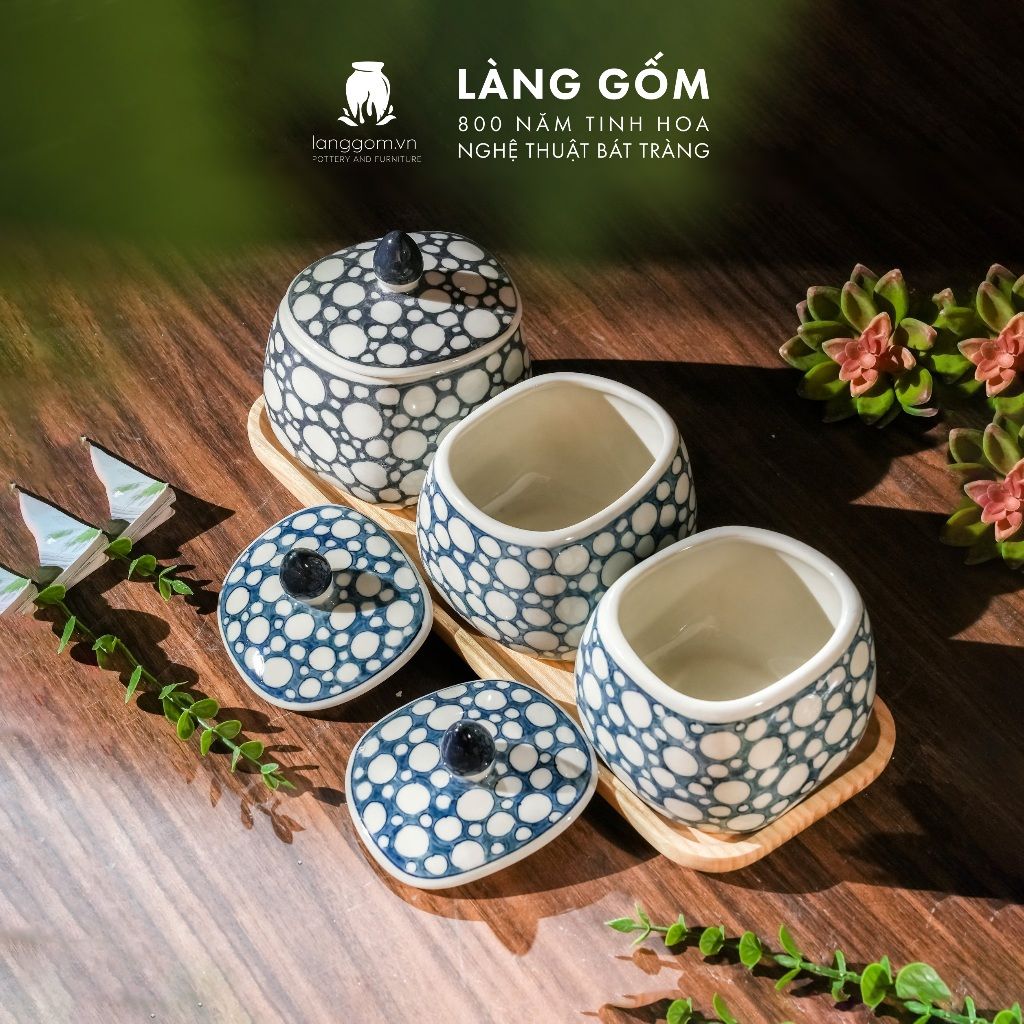 Khay gỗ sồi đựng hũ mứt hình chữ nhật, hình vuông, khay may cho set hũ mứt
