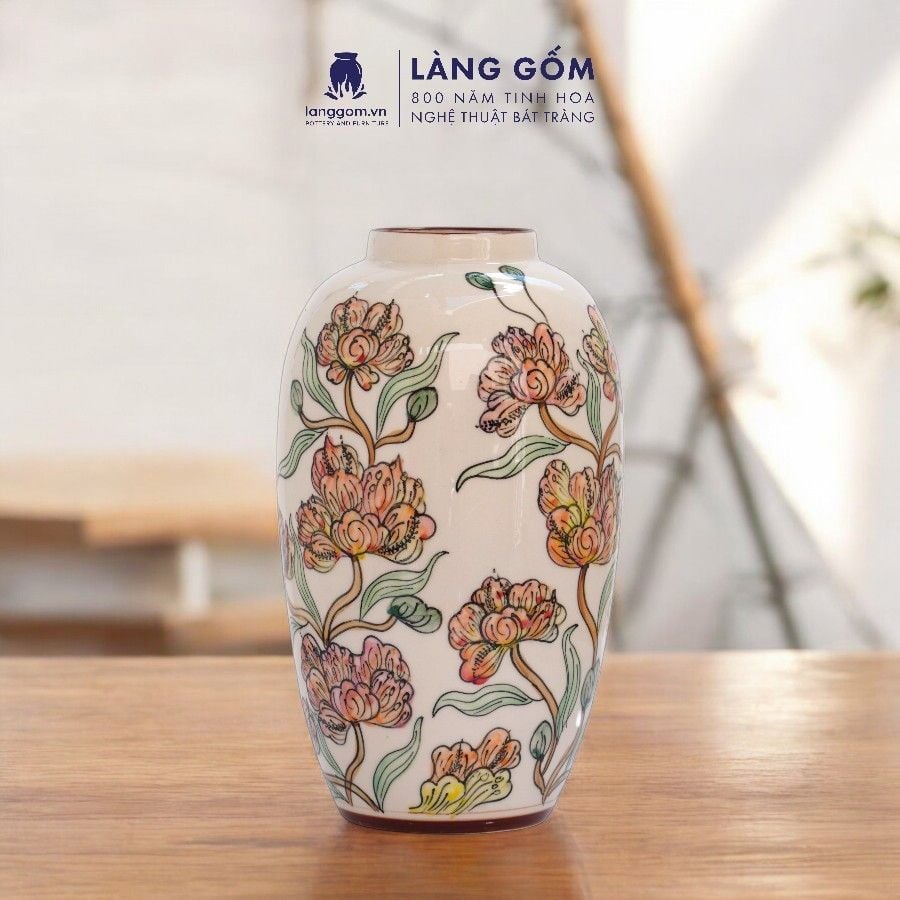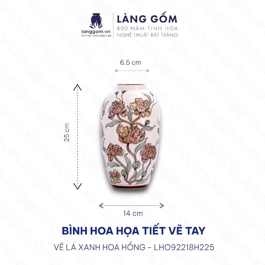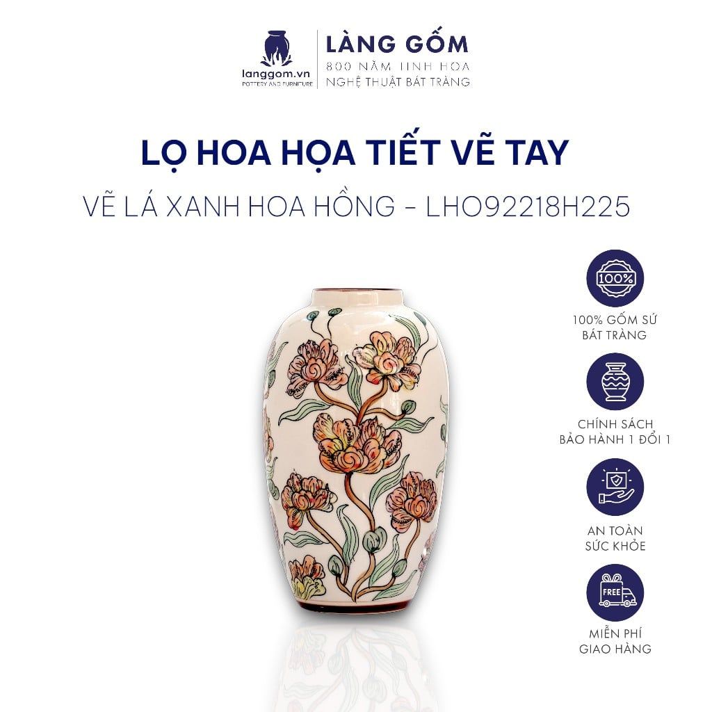 Lọ hoa vẽ tay hoạ tiết lá xanh hoa hồng