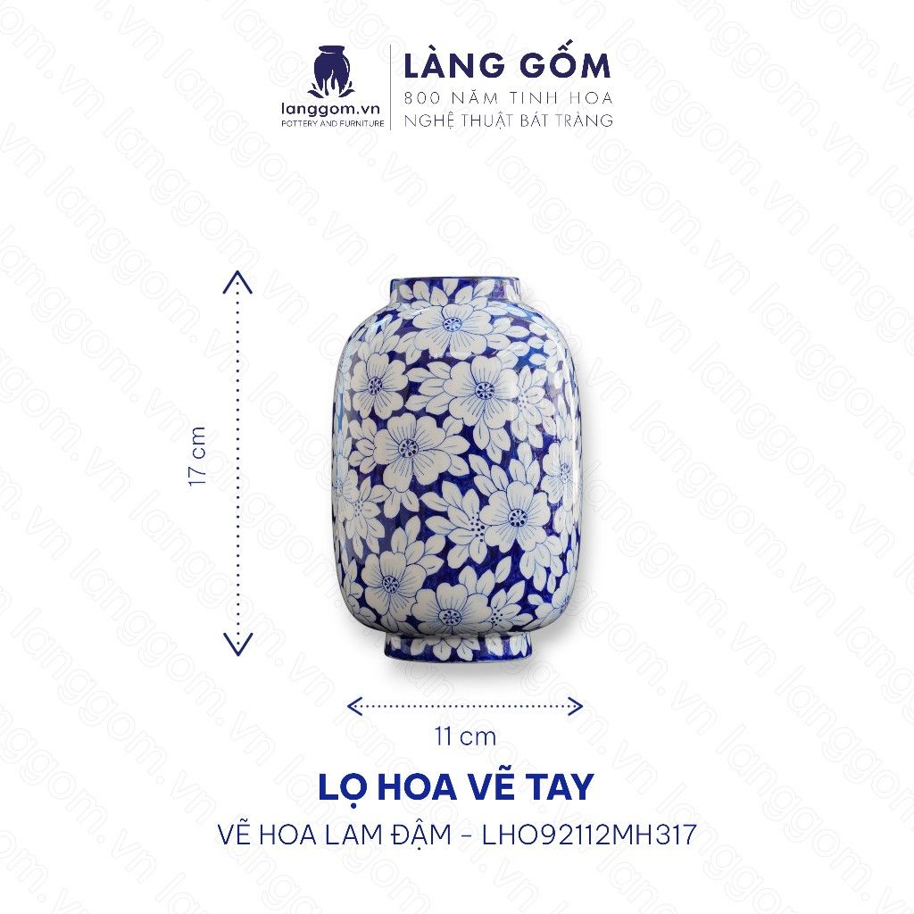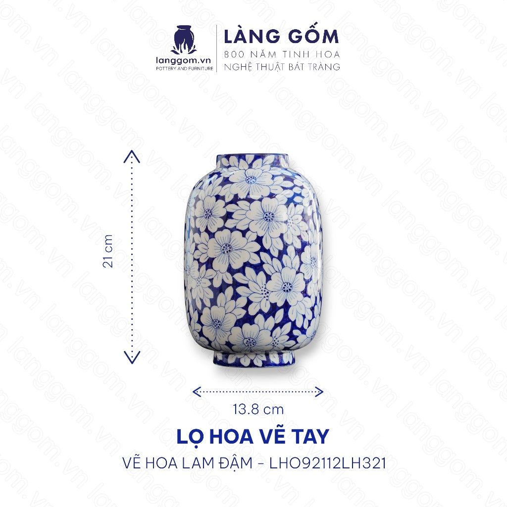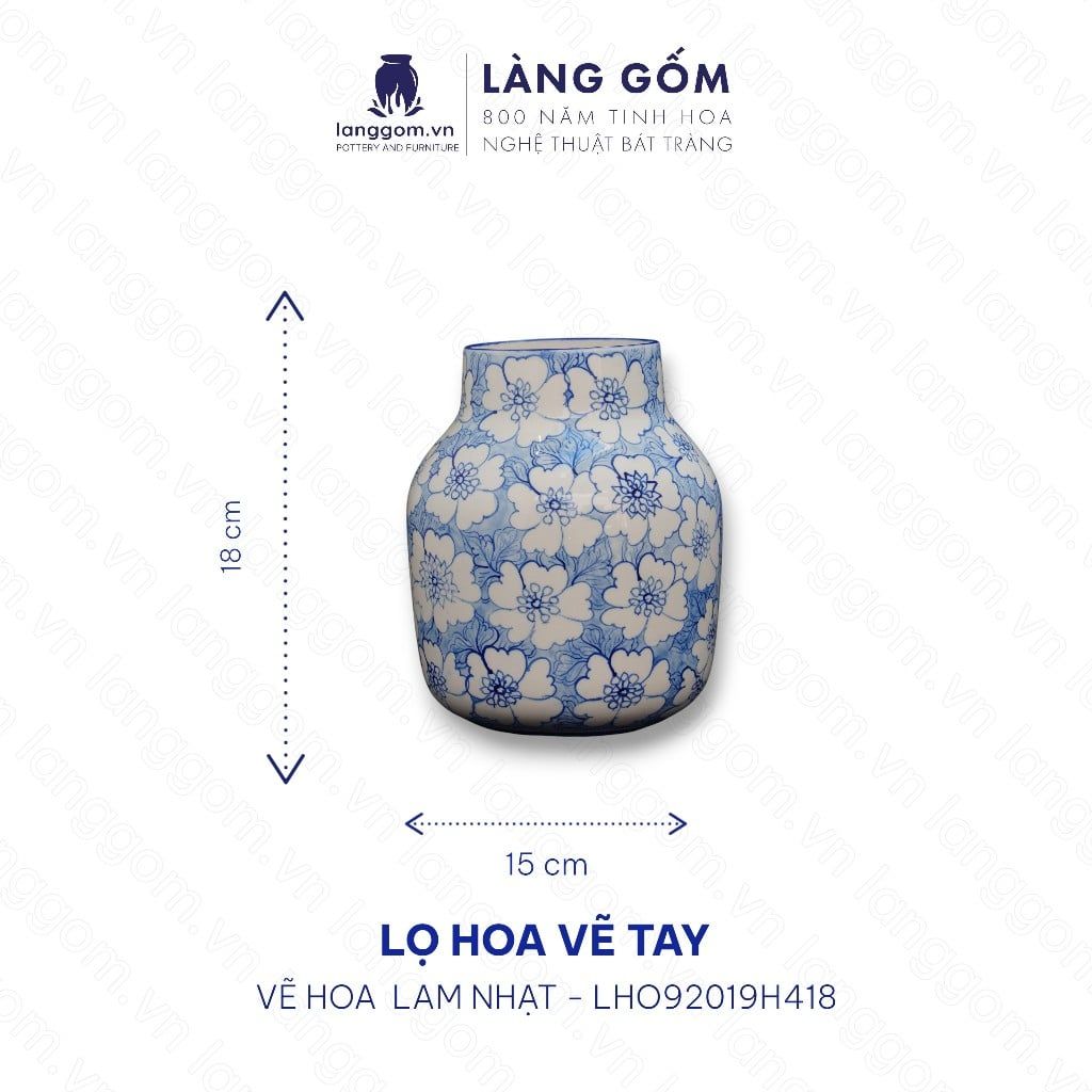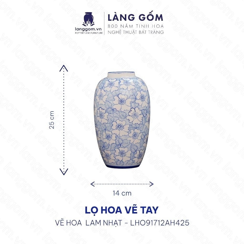 Lọ hoa men lam họa tiết vẽ tay (TH)