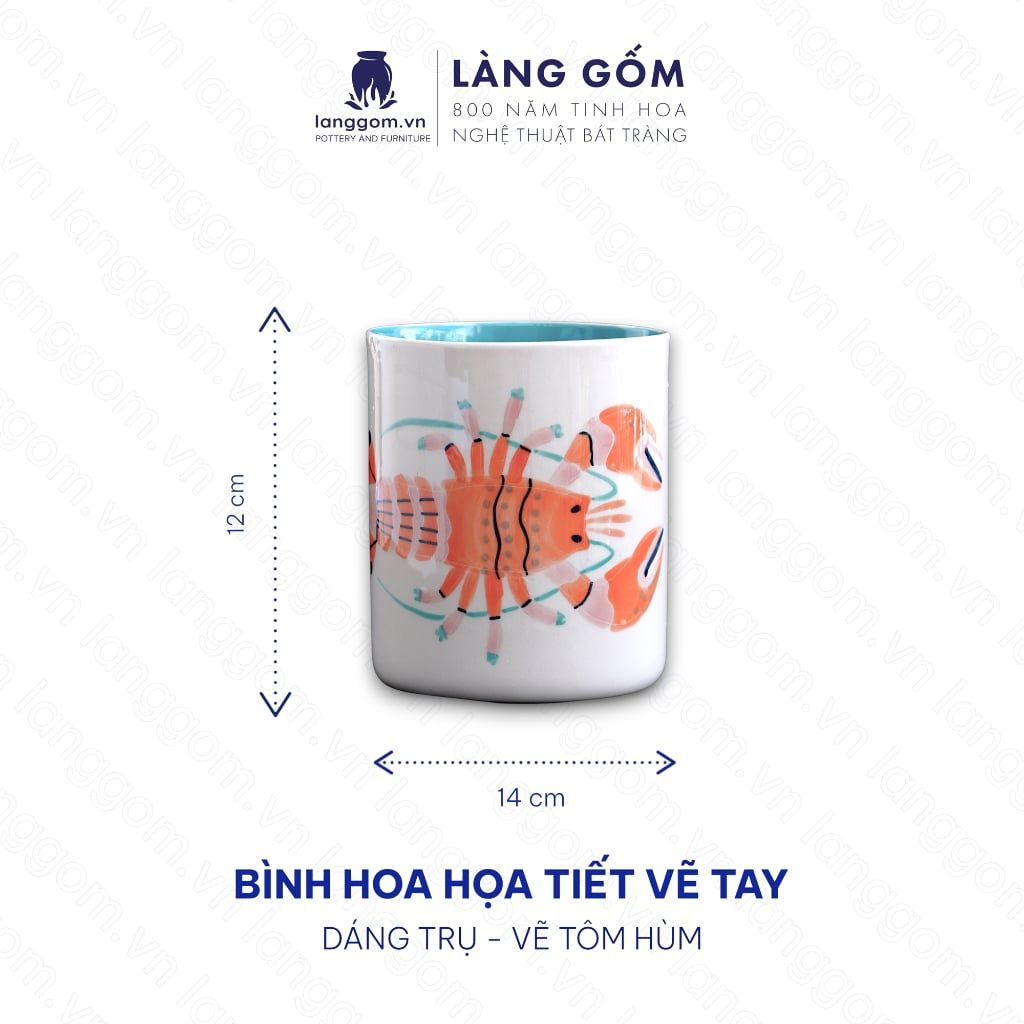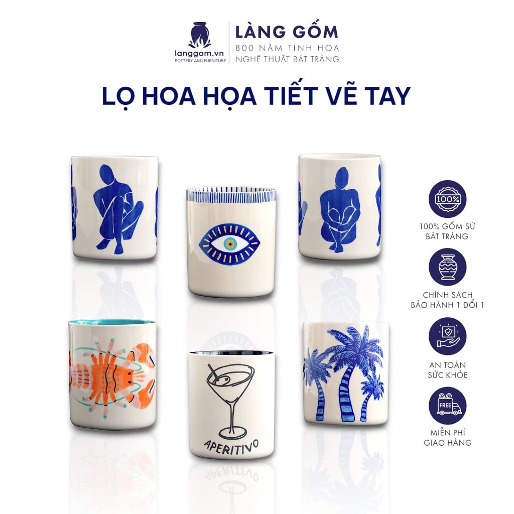 Lọ hoa men mát vẽ tay nhiều họa tiết