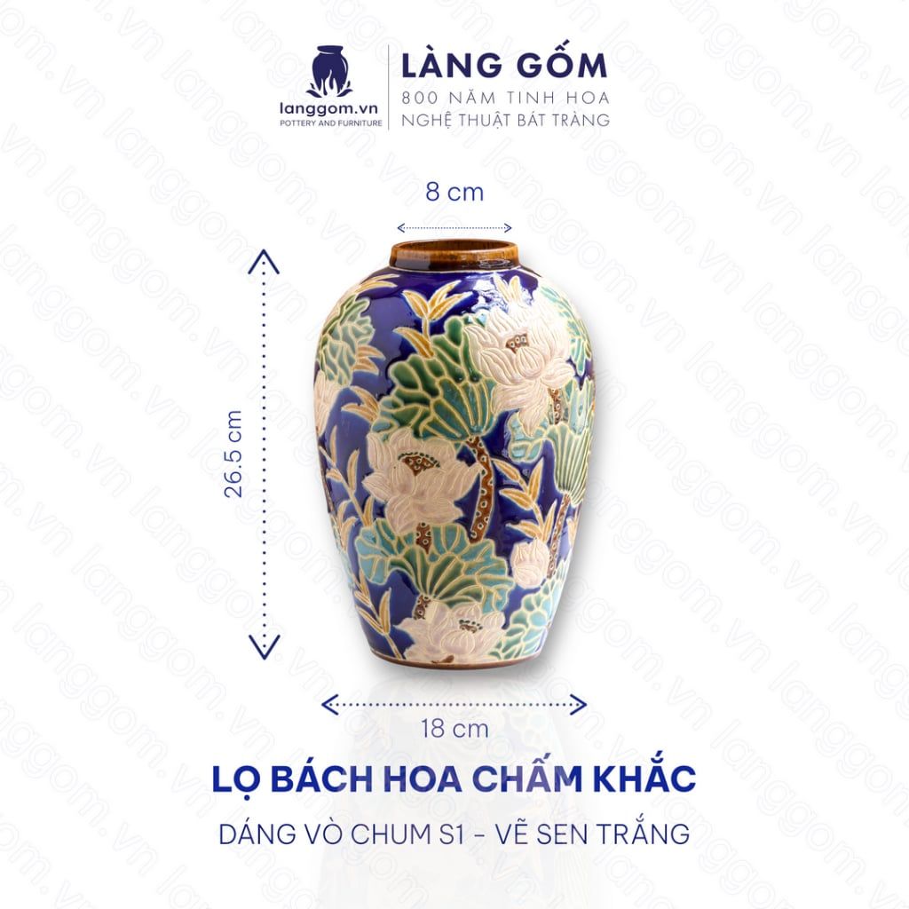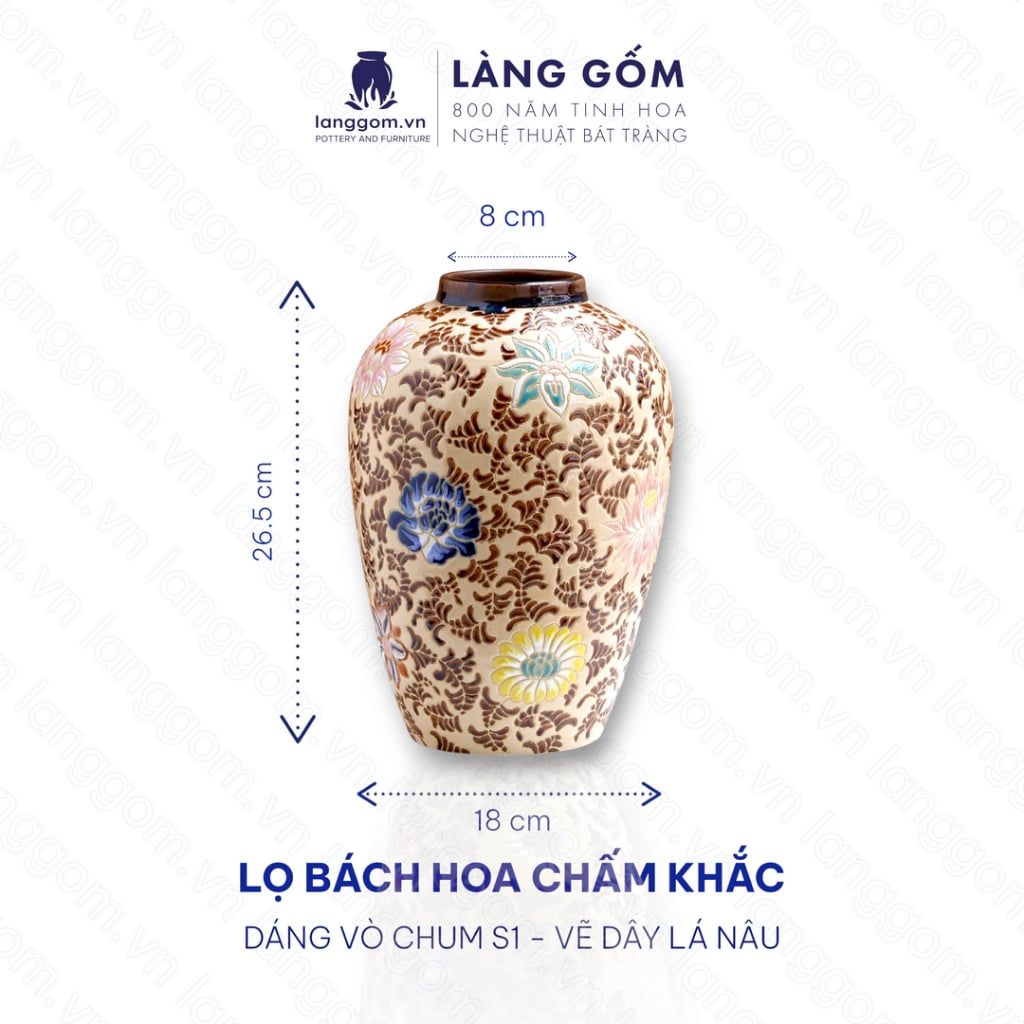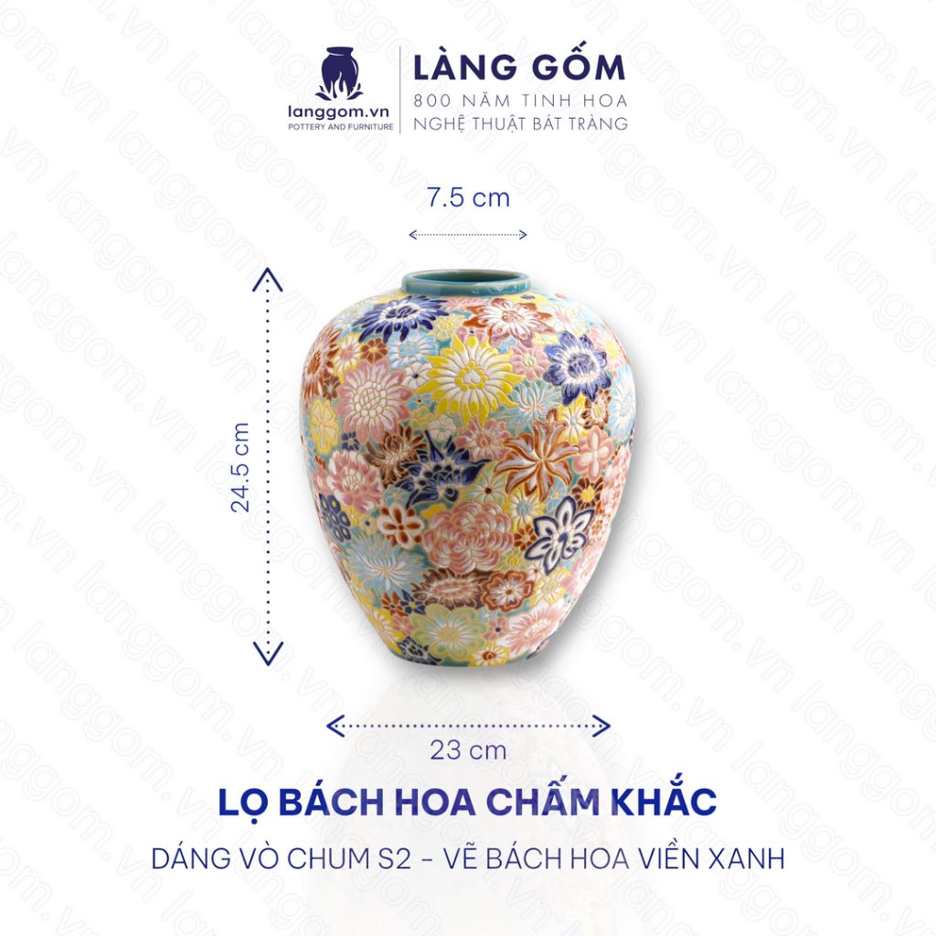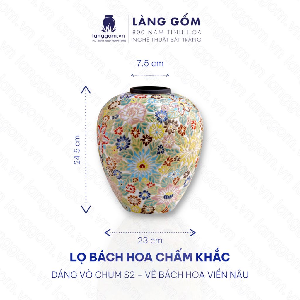 Lọ hoa vẽ bách hoa chấm màu dáng vò chum - Gốm sứ Biên Hòa