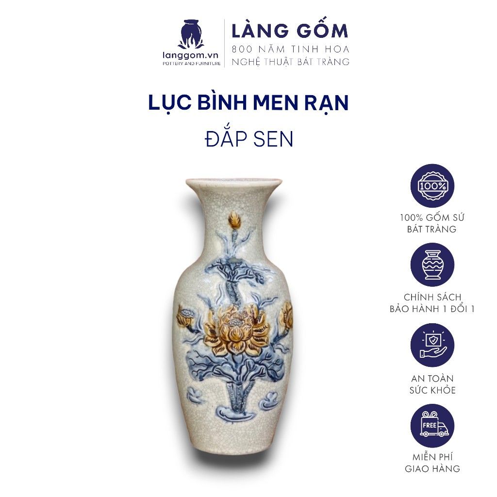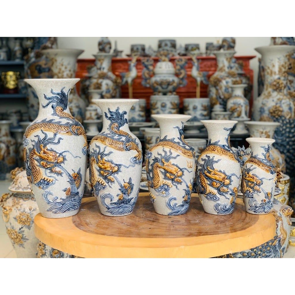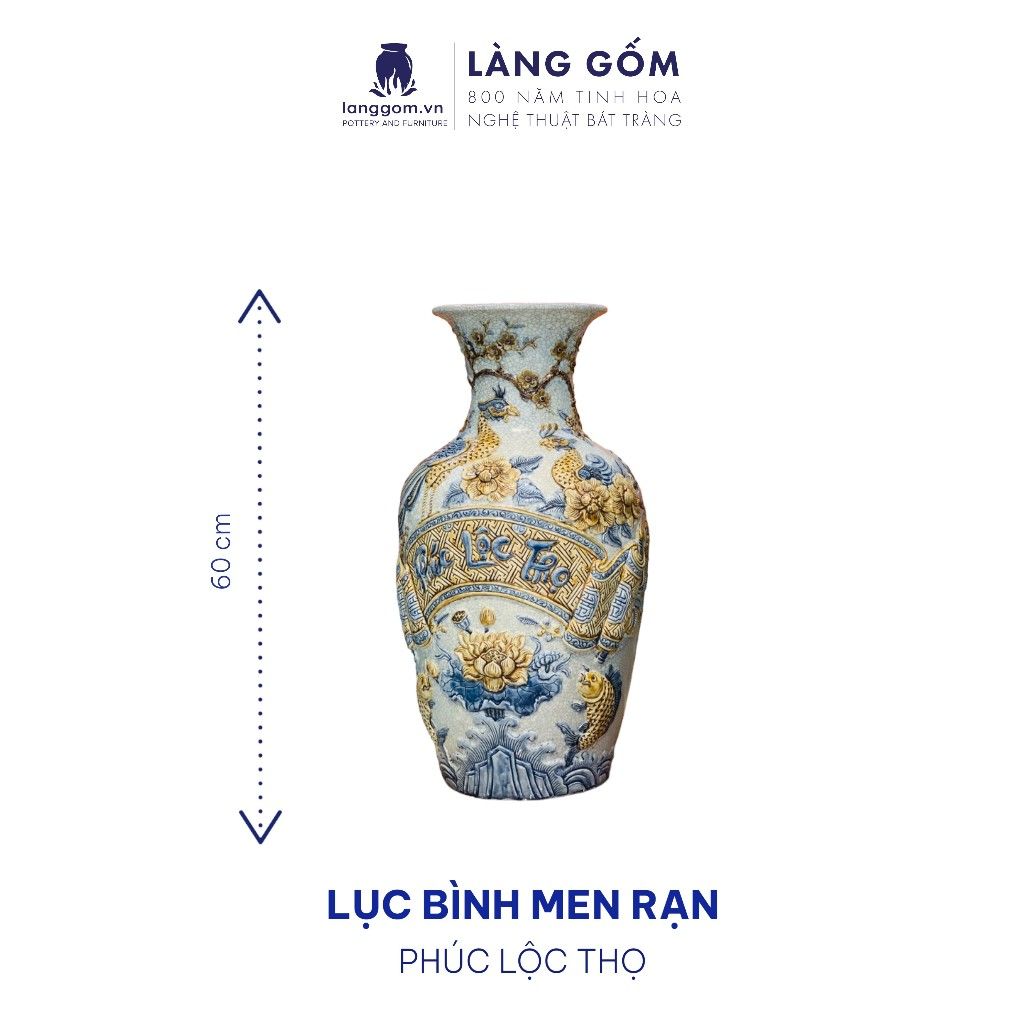 Lục bình phong thủy men rạn cổ đắp nổi tinh xảo