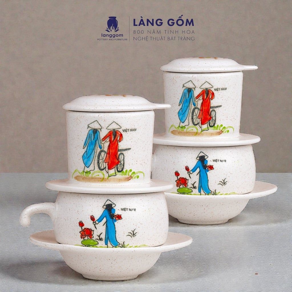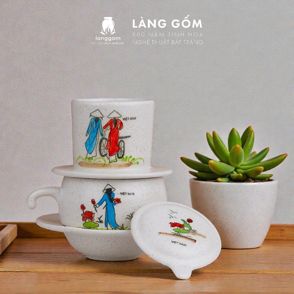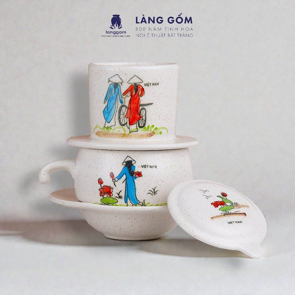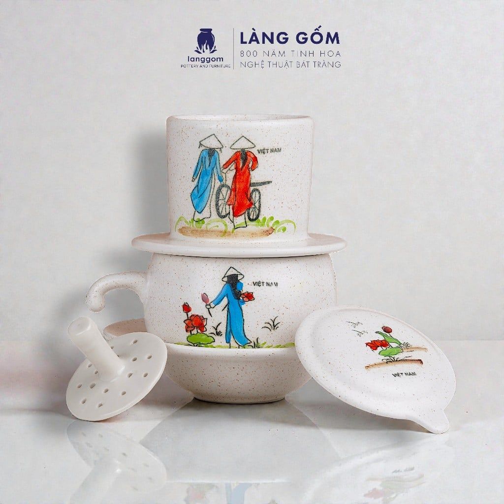 Phin cà phê hoạ tiết áo dài Việt Nam tinh khôi