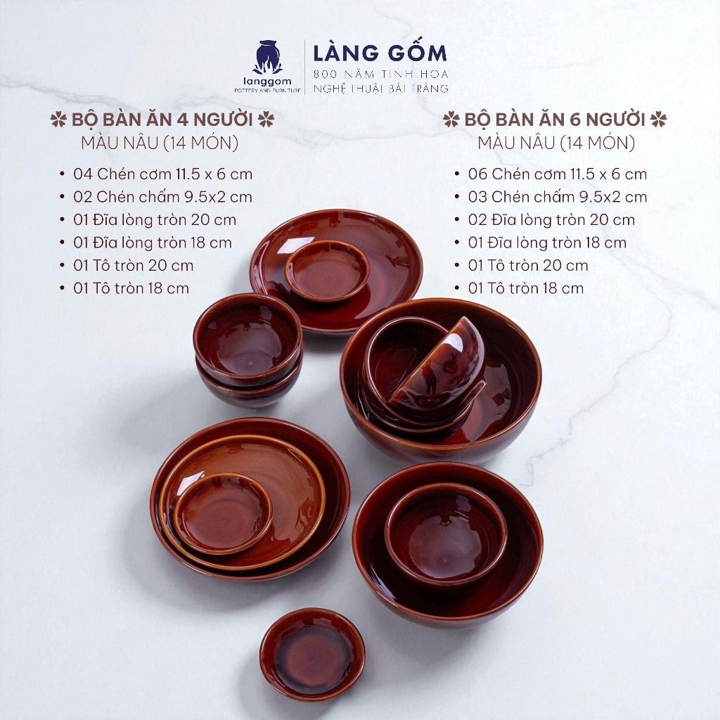 Bộ bàn ăn men hỏa biến - Màu nâu trầm